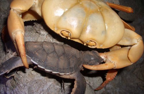 Os primeiros predadores naturais são raposas, caranguejos e formigas. Ao nascerem, os filhotes se tornam vulneráveis à predação por aves marinhas, caranguejos, polvos e uma grande diversidade de peixes marinhos.